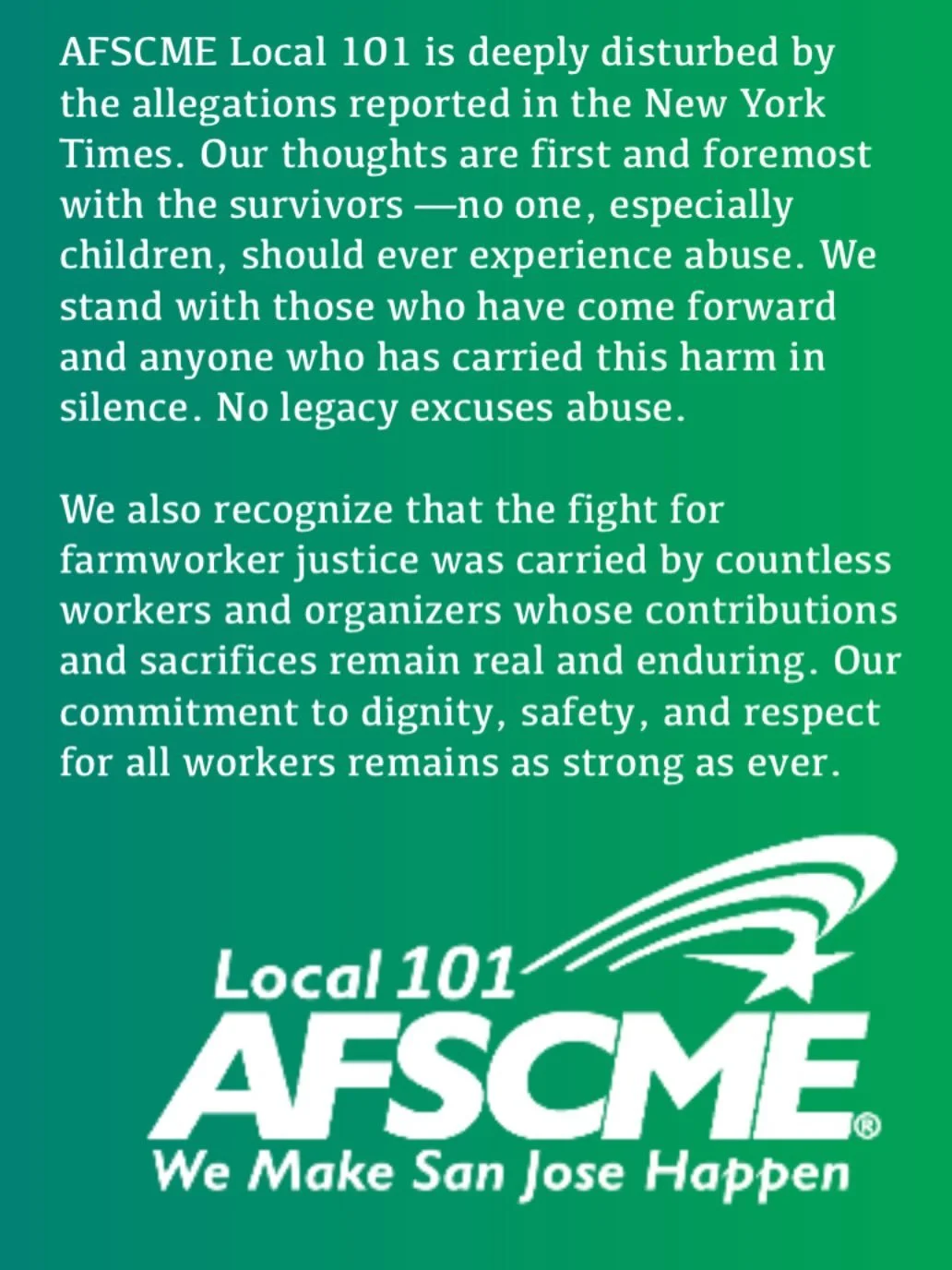 The purpose of the Municipal Employees’ Federation - AFSCME Local 101, is to improve the wages, benefits, and working conditions of its members; to promote their intellectual, social, and economic welfare; to represent its members in disputes with their employer; and, to champion the essential public services MEF members provide to our San Jose community.
